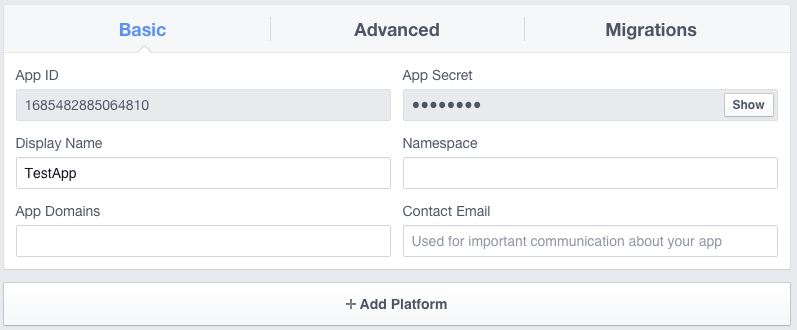Now you'll need to add the native platforms you'll be using to your app in the Facebook Developer portal under your app's Settings:
